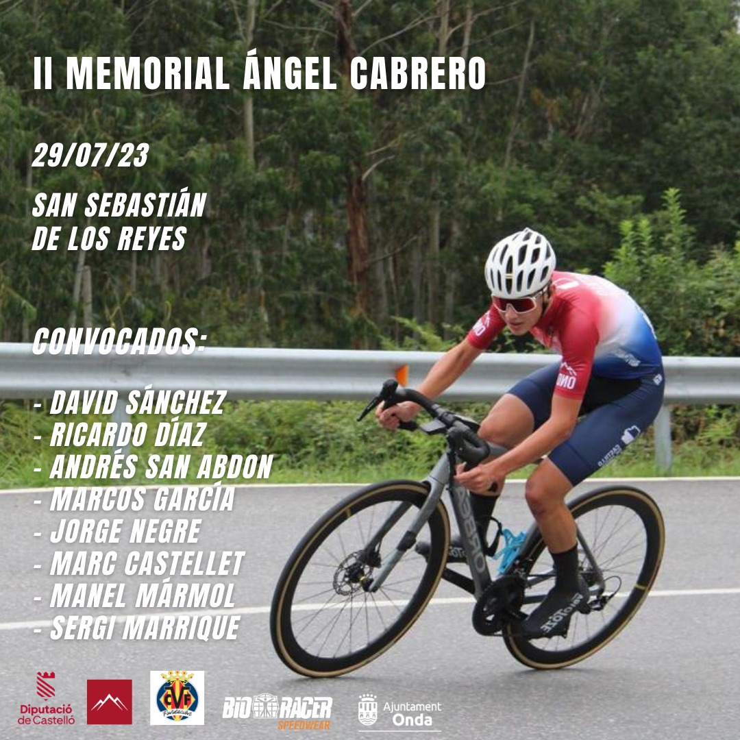 Para el Memorial Junior Ángel Cabrero el Castillo de Onda contará con David Sánchez, que viene de arrasar en su categoría en el Trofeo Vila de Sineu; Ricardo Díaz, Andrés San Abdón, Marcos García, Jorge Negre, Marc Castellet, Manel Mármol y Sergi Manrique.